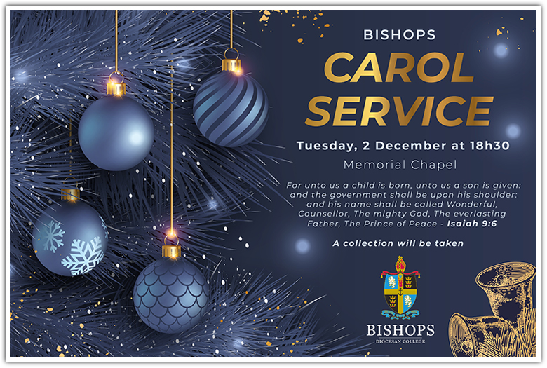 We will close our school year for the boys with our annual Carol Service which takes place on Tuesday evening as per the invitation sent out. Parents are warmly invited to attend as we prepare for the Christmas period while closing off the year. Normally we would have a morning of House meetings followed by a Eucharist and then Assembly but this year we will incorporate an assembly into the Carol Service. Grades 8, 9 and 11 are expected to be there and it would be wonderful if parents accompanied them.