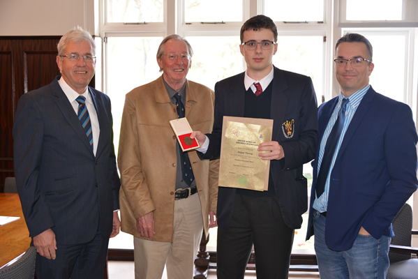 This week we heard the fantastic news that Angus Thring had come first in the National Physics Olympiad. This is a tremendous achievement considering that he has also won the National Science Olympiad. He was presented with his gold medal and certificate on Wednesday by representatives from the SA Institute of Physics. Well done indeed Angus, a superb achievement!