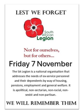 Poppies for Remembrance Day will be available from the Class Teachers. Boys to please bring a donation. |