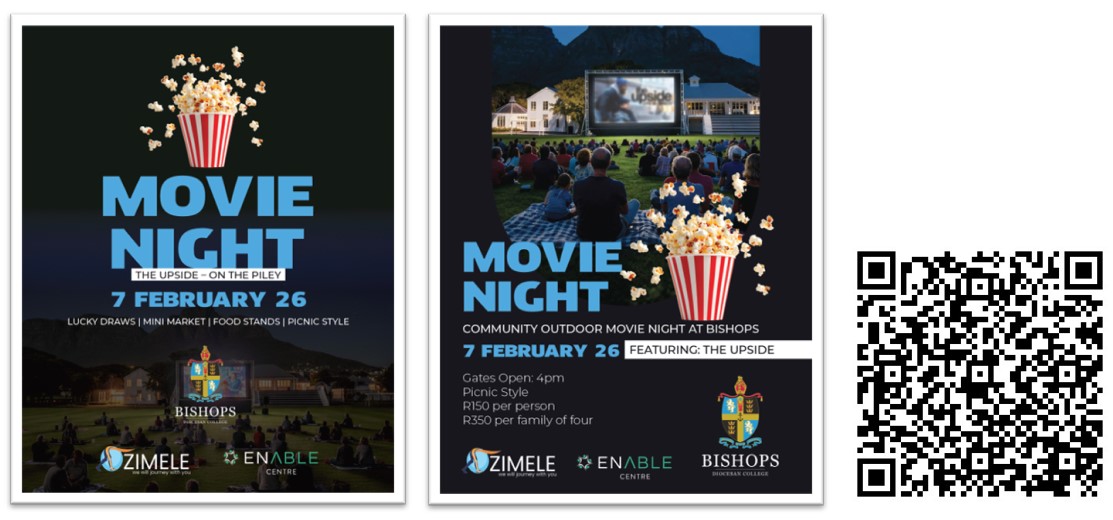 Bishops College are proudly co-hosting a first-ever Movie Night on the Piley Rees Field to help raise funds for Zimele and The Enable Centre.