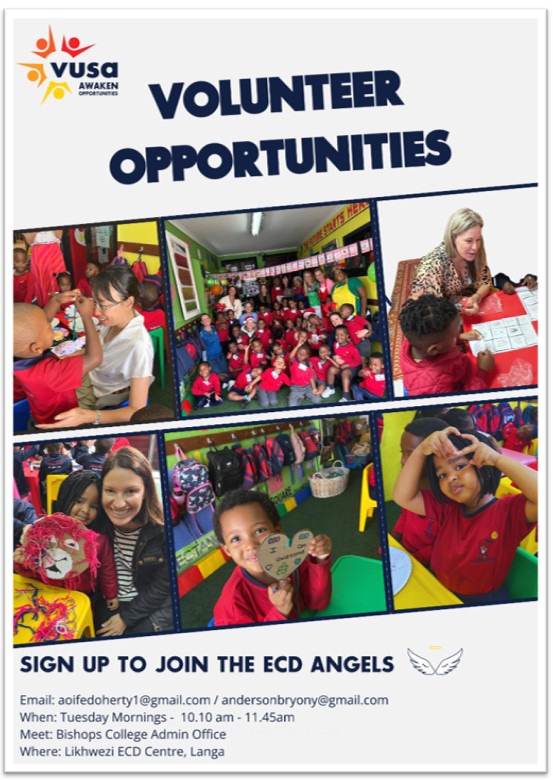 The ECD Angels are a group of (mostly) Bishops parents who visit one of our Early Childhood Development centres in Langa every Tuesday. You spend an hour with the children doing songs, puzzles, games, and simple activities. Volunteers usually agree on the activities beforehand, so you arrive feeling prepared and relaxed.