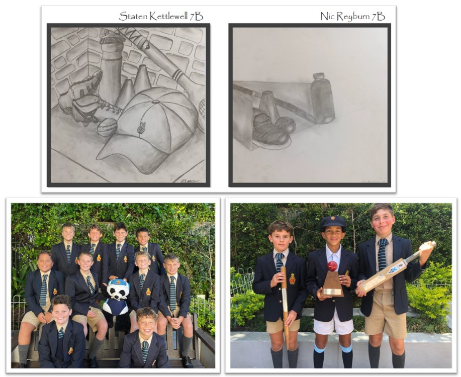The Artists of the Week were chosen from Grade 7. They are developing their drawing skills by observing a Still Life of sports equipment. The following boys were chosen for their expressive use of light and dark shading: (Please click HERE to view all the artwork).