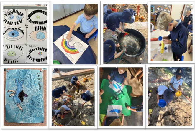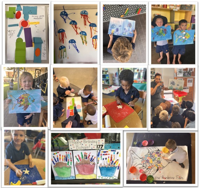 Alongside this sensory exploration, we focused on kindness and sharing. Mrs van Zyl shared the beautiful story The Rainbow Fish by Marcus Pfister during morning ring time. The boys then worked together on a large Rainbow Fish collage and created their own individual Rainbow Fish artworks. We spoke about how they can show kindness to their friends at school as well as to their families at home, and the boys shared some lovely ideas.