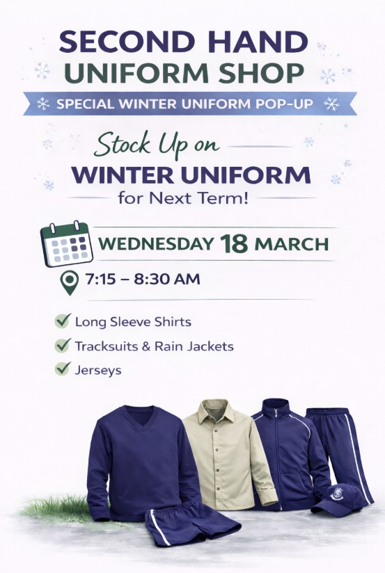 Second Hand Shop pop-up at the Pre-Prep, this time focused on winter season uniforms. We currently have quite a lot of stock of long sleeve khakis, jerseys, tracksuits, and small rain jackets. |
