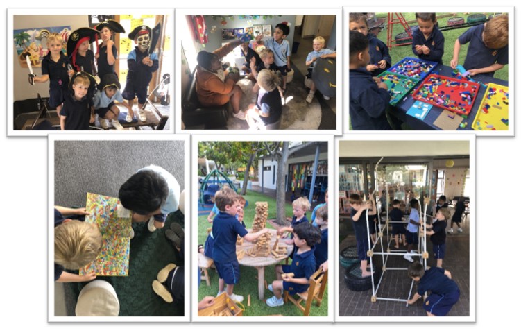 The Grade Ns are enjoying the warmer weather with plenty of water, sand, and mud play! If you find sand in your son's pockets at home, it's a sign they had a fun day at school. Last week, we explored the theme of Reptiles and were amazed by the facts some of the boys shared. Mrs Gedu occasionally enjoys putting on her own puppet show, and she had many spectators last week! This week, we have been diving into the world of Pirates. The teachers are now called "Captain!" instead of "Mrs." or "Miss". Our boys have nearly perfected the art of teamwork by building houses together, designing amazing structures with construction toys, and playing imaginative games as a team. We are proud of how they have learned to self-regulate and sometimes take themselves to a quiet spot to read a book with a friend when things get too hectic outside. |