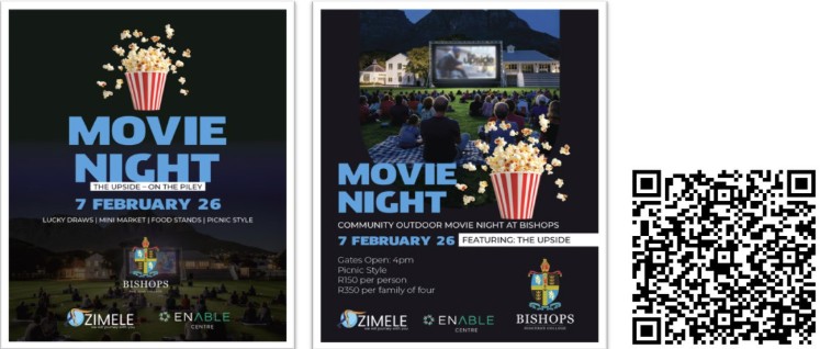 Bishops College are proudly co-hosting a first-ever Movie Night on the Piley Rees Field to help raise funds for Zimele and The Enable Centre.
